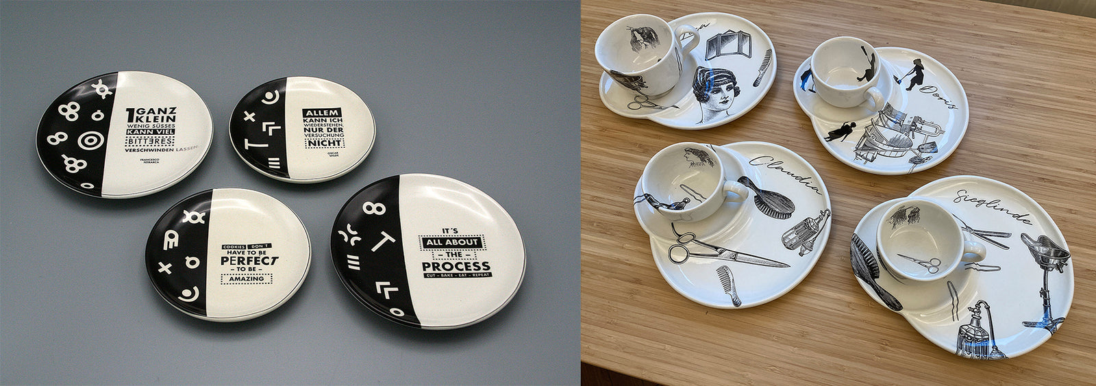 Renate Gerlach produziert Keramik-Einzelstücke und veredelt Vintage-Keramik.